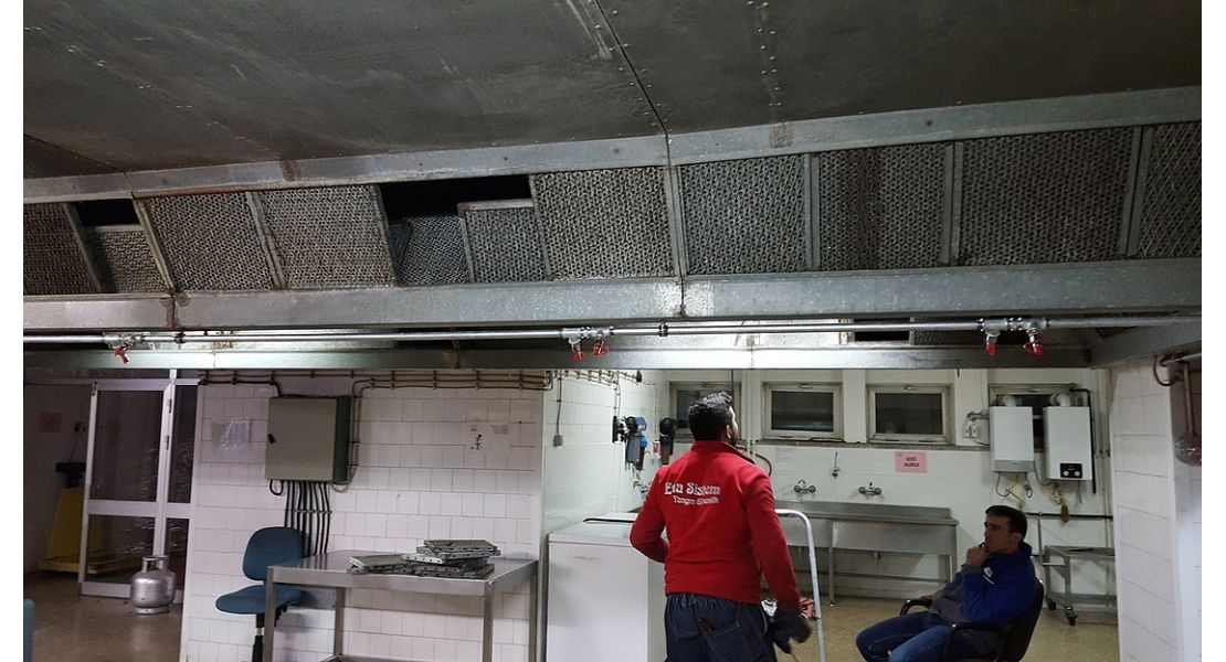 Davlumbazlarda zamanla biriken yağlar bir tabaka haline gelerek yangını meydana getirebilir. Bu sistemin bünyesinde gazlı söndürmede olduğu gibi yangını algılama devresi ve söndürme devresi bulunur.